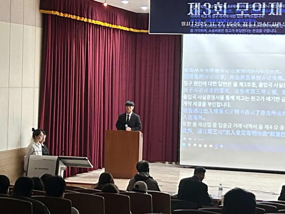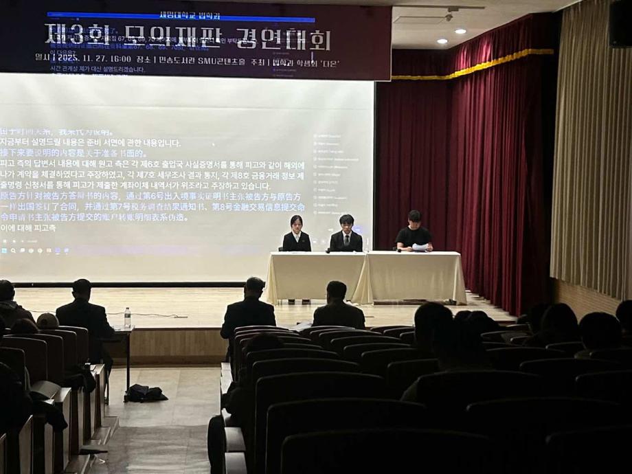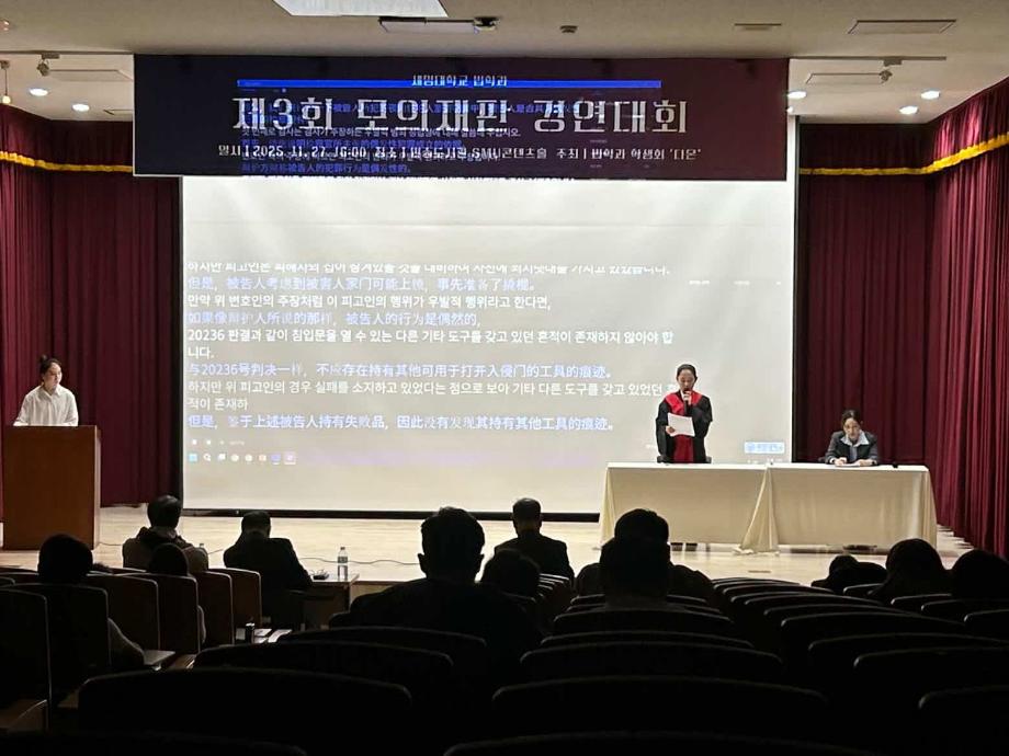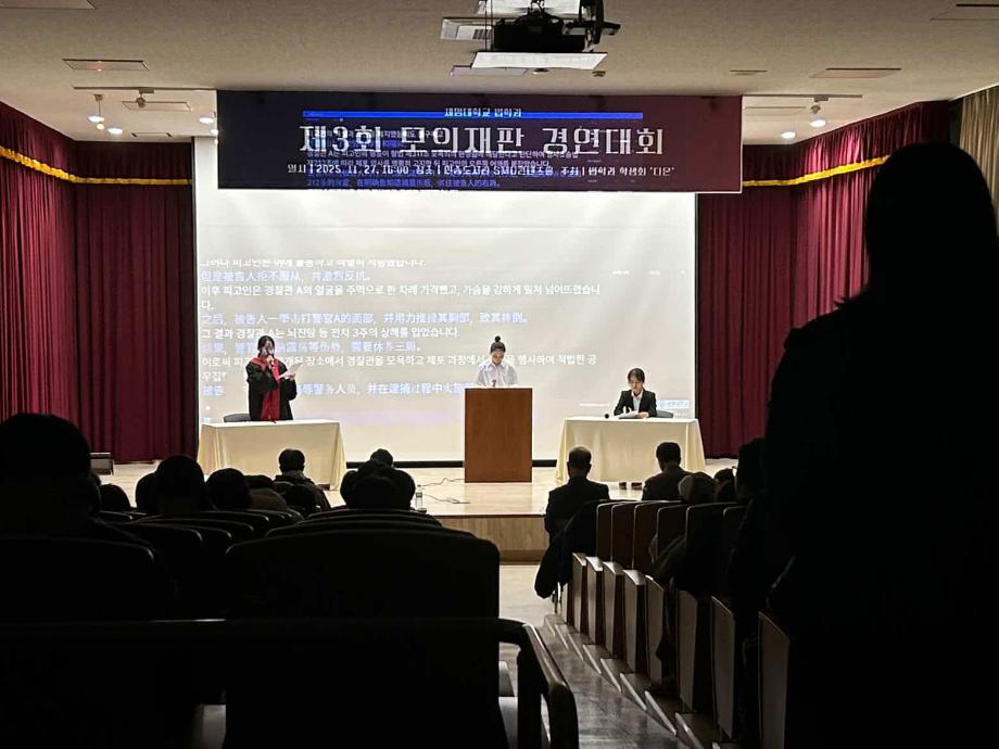 본문 시작 홈으로 커뮤니티 학과안내 교수소개 학과과정 커뮤니티 홈페이지가이드 학과사진첩 공지사항 취업정보 학과사진첩 학과행사 동아리 학생회 교우소식 학과사진첩 페이스북 트위터 프린트 2025학년도 제3회 법학과 모의재판 경연대회 법학과 327 2025-12-03 2025년 11월 27일 민송도서관 1층 콘텐츠홀에서 법학과 모의재판 경연대회 진행하였습니다. 참여하신 모든 분들 고생 많으셨습니다. 목록 이전2025학년도 법학과 특강 담당부서 : 법학과 담당자 : - 연락처 : 043-649-1764 최종수정일 : 2024-10-26 만족도조사 만족도 조사 이 페이지에서 제공하는 정보에 대하여 만족하시나요? 매우만족 만족 보통 불만족 매우불만족