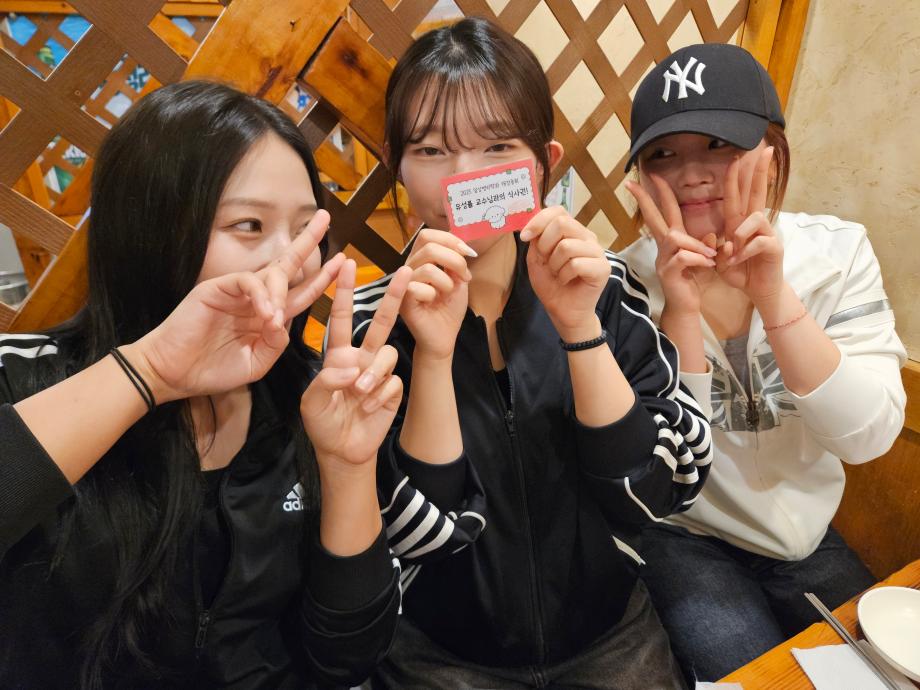 본문 시작 교수님과의 즐거운 식사 자리 임상병리학과 488 2025-10-01 개강총회 상품이었던 교수님과의 식사권 사용 인증샷입니다. 목록 이전2025년도 2학기 개강총회 이전청룡체전 피구부문 우승 담당부서 : 임상병리학과 담당자 : - 연락처 : 043-649-1537 최종수정일 : 2024-10-26 만족도조사 만족도 조사 이 페이지에서 제공하는 정보에 대하여 만족하시나요? 매우만족 만족 보통 불만족 매우불만족