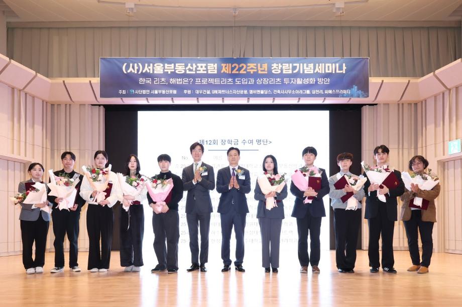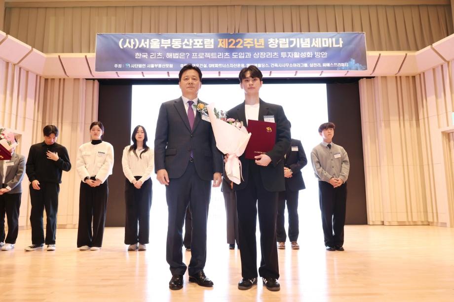 본문 시작 홈으로 학과 소식 학과소개 취업 및 진로 언론 및 보도 학과 소식 대학원 홈페이지가이드 행사사진게시판 행사사진게시판 공지사항 일반자료실 강의자료실 부동산학보 동아리 행사사진게시판 페이스북 트위터 프린트 제12회 서울부동산포럼 부동산지적학과 김관호 학생 장학생 선발 부동산지적학과 672 2025-11-07 행사명 : 제12회 서울부동산포럼 부동산학과 김관호 학생 장학생 선발 일시 : 2025.11.06. (목요일) 13:30 ~16:30 내용 : 부동산지적학과 3학년 김관호 학생이 서울부동산포럼에서 주관하는 '장학생'으로 선발되었습니다. 성실하게 학업과 학교생활에 임해온 학생은 이번 선발로 장학금 100만 원을 수여받았습니다. 학과는 장학생 선발을 진심으로 축하하며, 앞으로도 학업과 다양한 활동에 매진할 것을 응원합니다. 작성자: 부동산지적학과 조교 목록 다음 2025학년도 부동산컨설팅 특강 다음 2025년 2학기 도시경제부동산 대학원 종강모임 담당부서 : 부동산지적학과 담당자 : - 연락처 : 043-649-1369 최종수정일 : 2024-10-26 만족도조사 만족도 조사 이 페이지에서 제공하는 정보에 대하여 만족하시나요? 매우만족 만족 보통 불만족 매우불만족