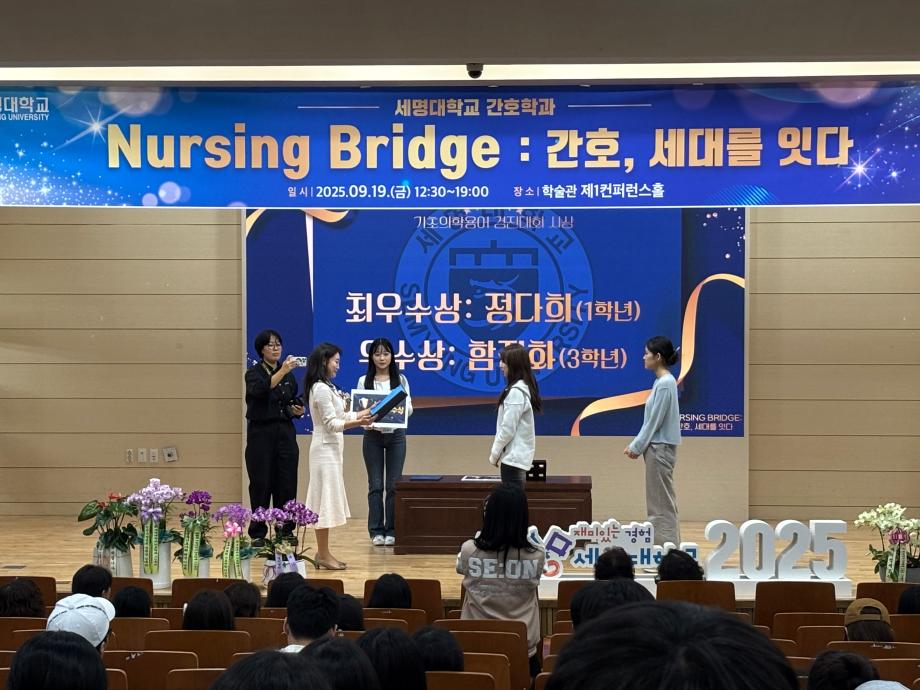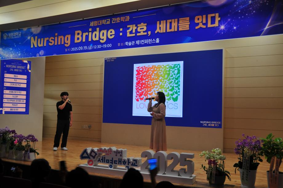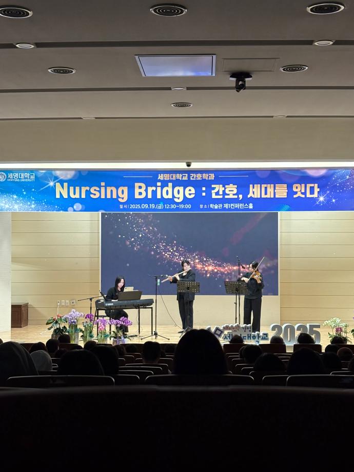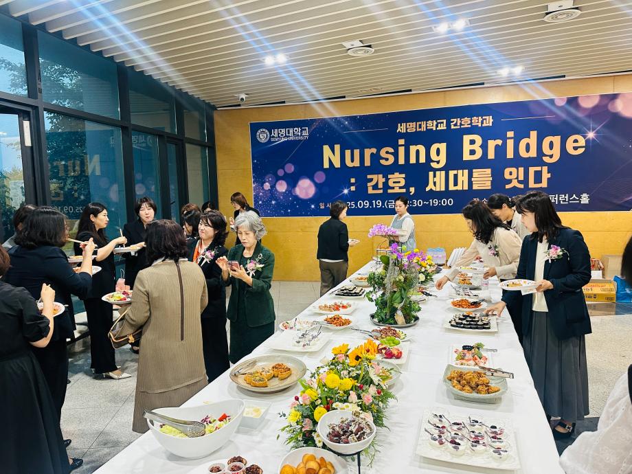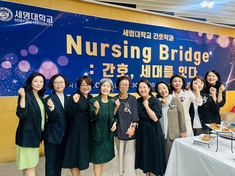 본문 시작 홈으로 커뮤니티 학과소개 교수소개 교육과정 학과소식 학과특성화 사업 커뮤니티 홈페이지가이드 포토갤러리 학사일정 포토갤러리 학생회 학과동아리 학과 취업정보 동창회 학과운영개선의견 발전기금 포토갤러리 페이스북 트위터 프린트 🎉 세명대학교 간호학과 30주년 기념행사 🎉 Nursing Bridge: 간호, 세대를 잇다 간호학과 341 2025-09-24 이번 행사에는 신경림 대한간호협회장님의 기조강연과 정승교 명예교수님의 특별강연이 있었습니다. 권동현 총장님을 비롯한 각 부처 처장님, 명지병원 병원장님, 간호부장님 등 여러 기관에서도 직접 참여해주시고, 축하영상 및 화환을 보내주시어 자리가 더욱 빛났습니다. 1기 졸업생부터 현 재학생까지 500여명이 한뜻으로 모여 뜻깊은 시간을 보냈습니다. 과거와 현재, 그리고 미래의 간호를 잇는 ‘Nursing Bridge’ 그 감동의 순간들입니다. 목록 이전🎓 [2025학년도 핵심간호술 졸업인증제 – 선배님들의 모교 방문] 다음 2025년 2학기 간호학과 교학간담회 담당부서 : 간호학과 담당자 : 서예지 연락처 : 043-649-1357 최종수정일 : 2024-10-26 만족도조사 만족도 조사 이 페이지에서 제공하는 정보에 대하여 만족하시나요? 매우만족 만족 보통 불만족 매우불만족