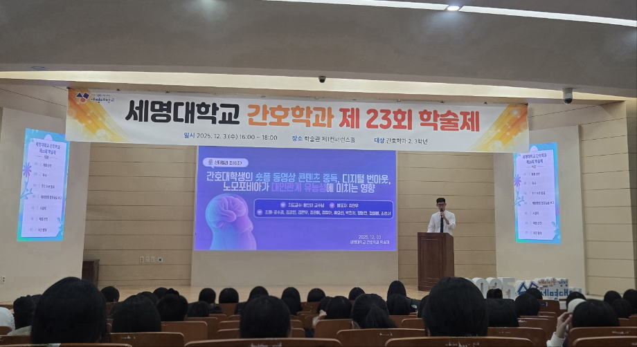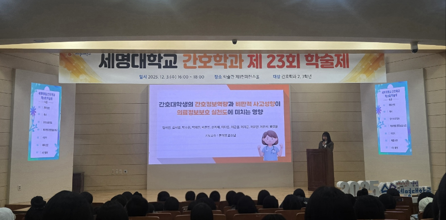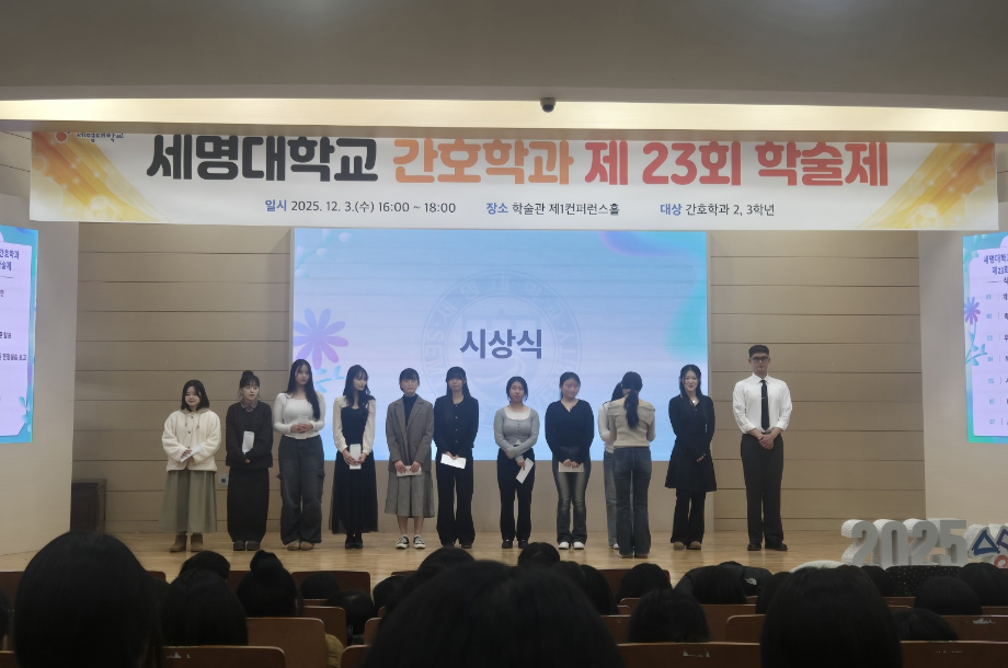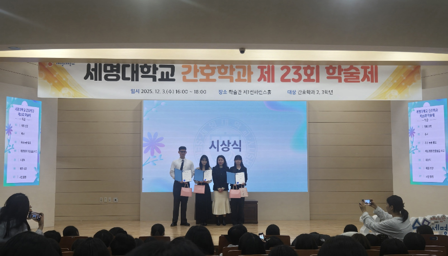 본문 시작 홈으로 커뮤니티 학과소개 교수소개 교육과정 학과소식 학과특성화 사업 커뮤니티 홈페이지가이드 포토갤러리 학사일정 포토갤러리 학생회 학과동아리 학과 취업정보 동창회 학과운영개선의견 발전기금 포토갤러리 페이스북 트위터 프린트 제 23회 간호학과 학술제 간호학과 357 2025-12-08 12/3 진행된 📝 2024 학술제 발표와 ✈ 해외 인턴십 경험 공유 후기가 학과 블로그에 업로드되었습니다. 발표 현장과 생생한 경험담이 궁금하다면 아래 링크를 확인해주세요 👇 🔗 링크 https://blog.naver.com/nursing_smu_official/224099825798 목록 이전📍 ‘임상실습 안전사고 ZERO를 위하여’ 특강 담당부서 : 간호학과 담당자 : - 연락처 : 043-649-1357 최종수정일 : 2024-10-26 만족도조사 만족도 조사 이 페이지에서 제공하는 정보에 대하여 만족하시나요? 매우만족 만족 보통 불만족 매우불만족