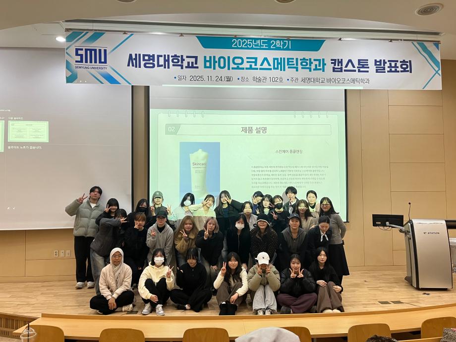 본문 시작 홈으로 커뮤니티 학과소개 학과과정 대학원 커뮤니티 연구동아리 홈페이지가이드 포토갤러리 학과공지 채용정보 학과일정 포토갤러리 유튜브 인스타그램 취업현황 학생회 조직도 졸업생 숏터뷰 포토갤러리 페이스북 트위터 프린트 2025학년도 2학기 캡스톤 디자인 발표회 바이오코스메틱학과 386 2025-11-25 바이오코스메틱학과에서는 11월 24일 2025학년도 2학기 캡스톤 디자인 발표회를 진행하였습니다. 목록 이전2025학년도 5차 화장품생명공학세미나 다음 2025학년도 F.P.L 동아리 핸드크림 제조 실습 담당부서 : 바이오코스메틱학과 담당자 : - 연락처 : 043-649-1638 최종수정일 : 2024-10-26 만족도조사 만족도 조사 이 페이지에서 제공하는 정보에 대하여 만족하시나요? 매우만족 만족 보통 불만족 매우불만족