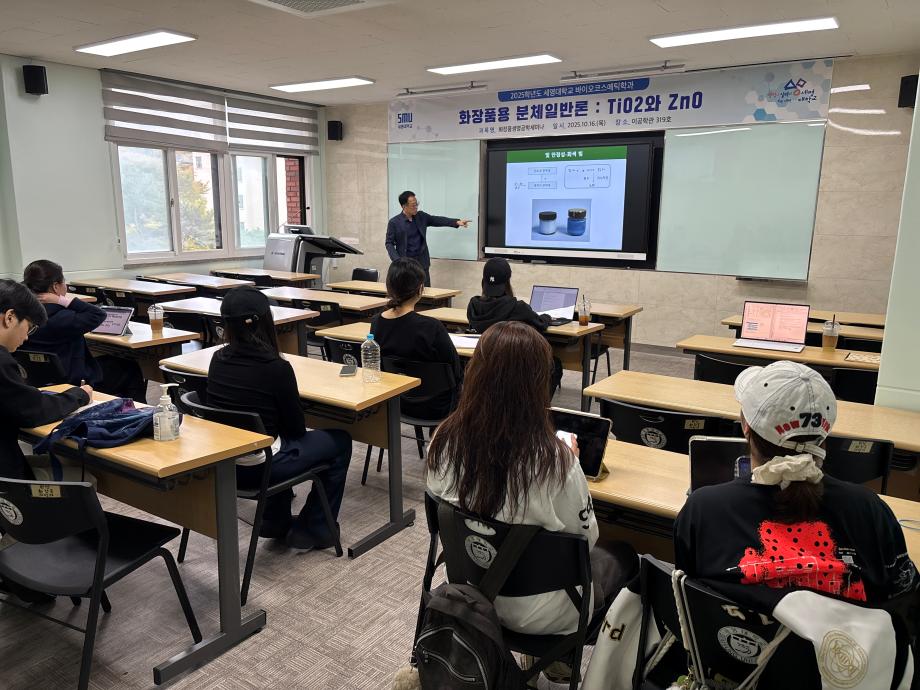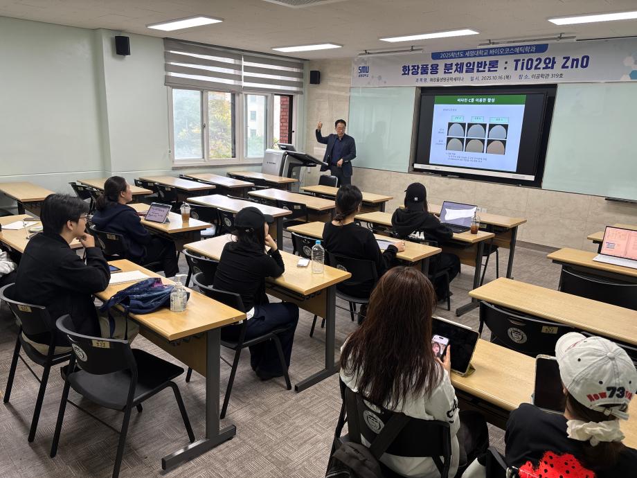 본문 시작 홈으로 커뮤니티 학과소개 학과과정 대학원 커뮤니티 연구동아리 홈페이지가이드 포토갤러리 학과공지 채용정보 학과일정 포토갤러리 유튜브 인스타그램 취업현황 학생회 조직도 졸업생 숏터뷰 포토갤러리 페이스북 트위터 프린트 2025학년도 3차 화장품생명공학세미나 바이오코스메틱학과 41 2025-10-17 2025학년도 3차 화장품생명공학세미나를 진행했습니다. 목록 이전2025학년도 2차 S-BOOT 특강_Evolution of K-Beauty 담당부서 : 바이오코스메틱학과 담당자 : 이천일 연락처 : 043-649-1638 최종수정일 : 2024-10-26 만족도조사 만족도 조사 이 페이지에서 제공하는 정보에 대하여 만족하시나요? 매우만족 만족 보통 불만족 매우불만족