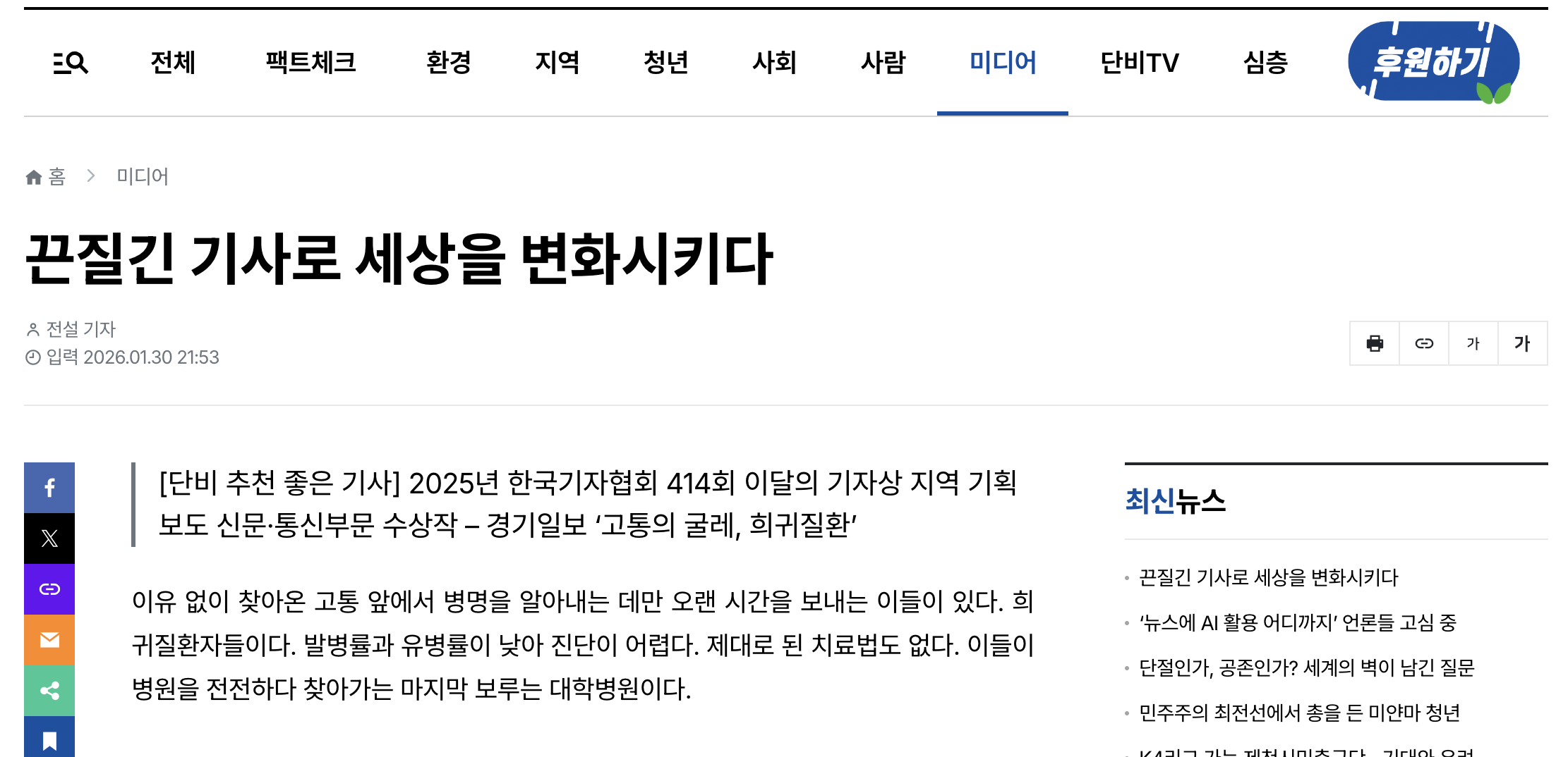 끈질긴 기사로 세상을 변화시키다