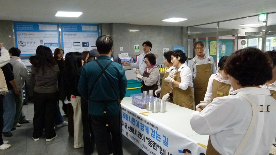 본문 시작 홈으로 커뮤니티 학과소개 교수소개 교육과정 현장실습 및 취업정보 커뮤니티 홈페이지가이드 포토갤러리 학과공지 학사일정 학생회 동아리 학생 소통 광장 포토갤러리 전공자료실 서식자료실 포토갤러리 페이스북 트위터 프린트 [사회복지학과] 중간고사 응원 간식 나눔 이벤트 진행 사회복지학과 287 2025-11-05 제천시실버복지관에서 학생들의 중간고사를 응원하기 위해 간식 나눔 이벤트를 진행해주셨습니다. 목록 이전[학생회] '우리 내일 놀래?' 행사 진행 다음 [사회복지학과] 찾아가는 통계 특강 진행 만족도조사 만족도 조사 이 페이지에서 제공하는 정보에 대하여 만족하시나요? 매우만족 만족 보통 불만족 매우불만족