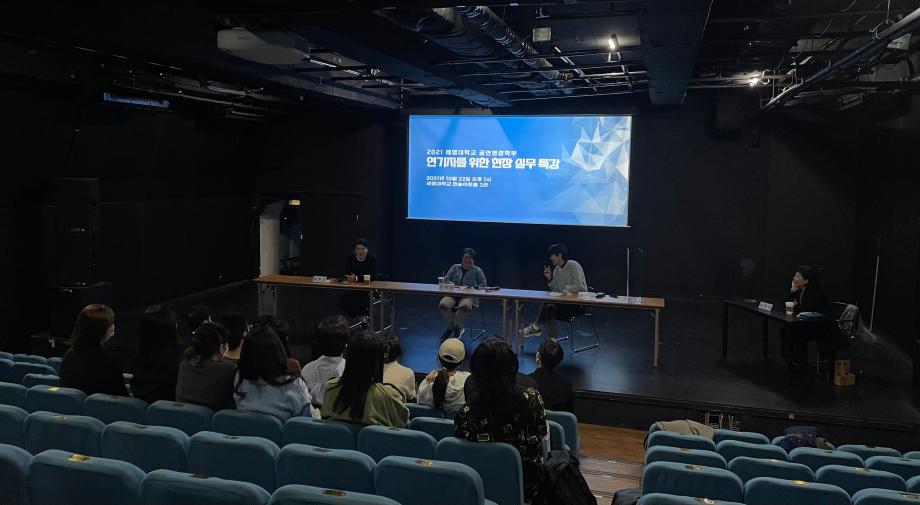 본문 시작 홈으로 커뮤니티 학과소개 교수소개 학과과정 커뮤니티 작품DB 서울대학로 민송아트홀 홈페이지가이드 사진자료실 학과공지 전공자료실 사진자료실 사진자료실 페이스북 트위터 프린트 2021학년도 연기예술학과 현장 실무 특강 공연영상학과 2720 2021-10-22 10월 22일 민송아트홀 2관에서 21학년도 공연영상학부 현장 실무 특강이 진행되었습니다! 송영규 교수님, 송창의 배우님, 김희정 감독님의 알차고 유익했던 특강은 많은 학생들이 현장 실무에 대하여 폭 넓게 배울 수 있는 시간이었습니다. 강연해주신 송영규 교수님, 송창의 배우님, 김희정 감독님께 진심으로 감사의 말씀 드립니다. 앞으로 더욱 성장할 수 있는 세명대학교 공연영상학부가 되겠습니다! 목록 다음 2021학년도 2학기 과체전 다음 2021학년도 2학기 극장 스텝교육 담당부서 : 공연영상학과 담당자 : - 연락처 : 043-649-1429 최종수정일 : 2024-10-26 만족도조사 만족도 조사 이 페이지에서 제공하는 정보에 대하여 만족하시나요? 매우만족 만족 보통 불만족 매우불만족