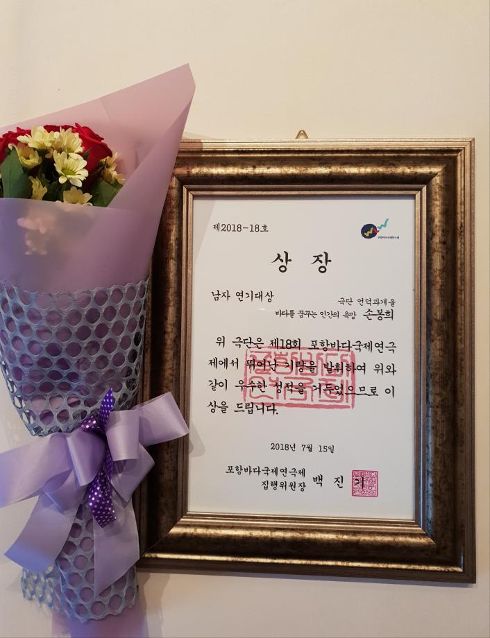 제18회 포항바다국제연극제(PBITF) '연기대상' 수상