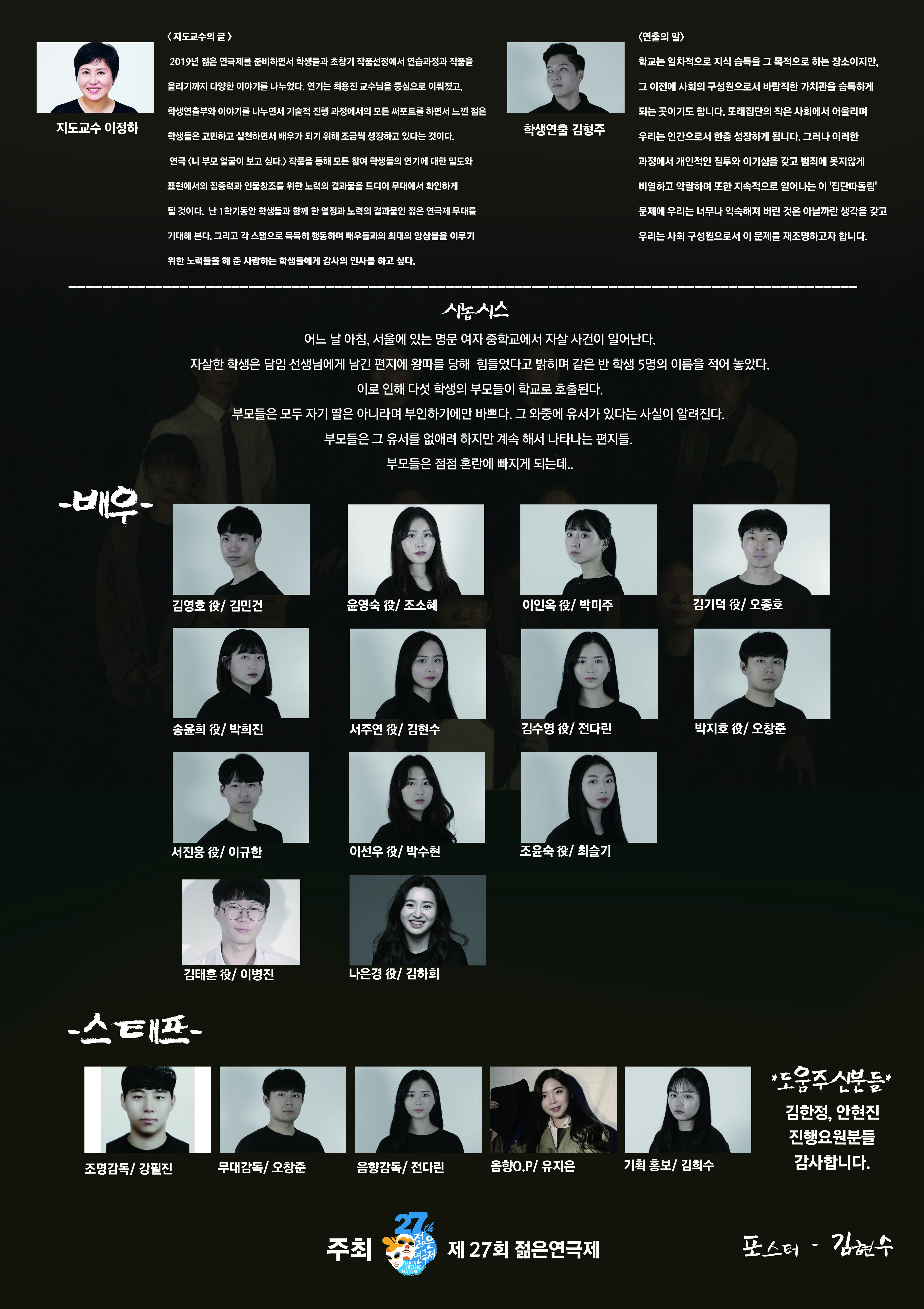 [공연영상학과] 제 27회 젊은연극제 참가작 " 니 부모 얼굴이 보고싶다 "