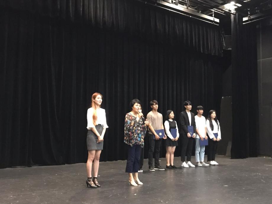 교수님들의 인사말씀을 시작으로 여름방학기간동안 연극놀이지도사 자격증을 취득한 학생들을 위한