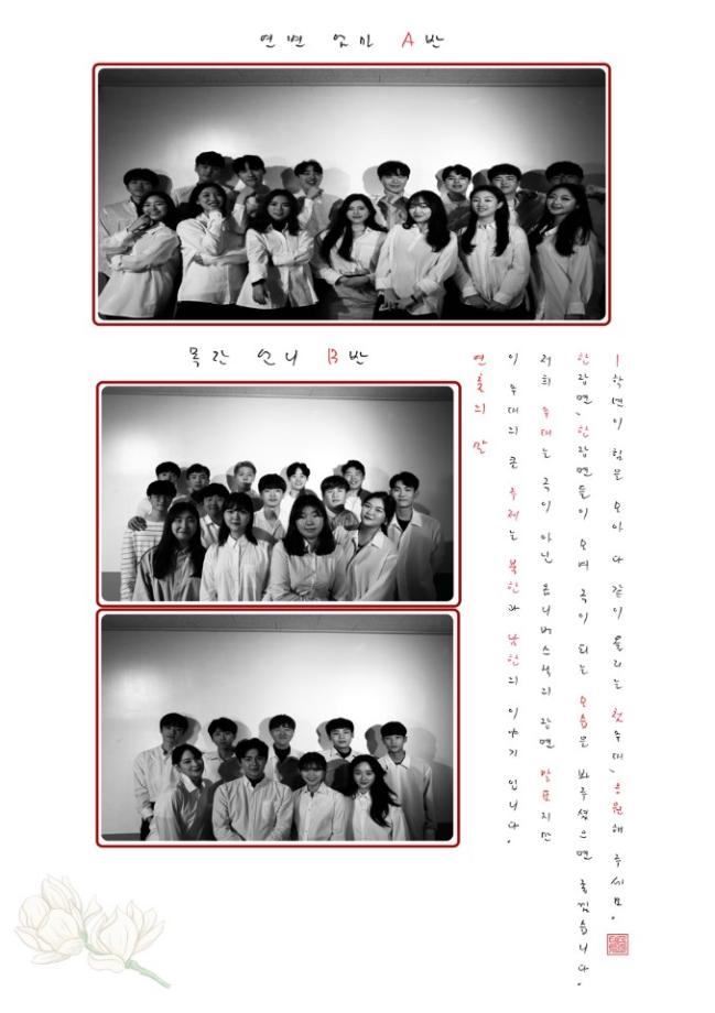 본문 시작 홈으로 커뮤니티 학과소개 교수소개 학과과정 커뮤니티 작품DB 서울대학로 민송아트홀 홈페이지가이드 사진자료실 학과공지 전공자료실 사진자료실 사진자료실 페이스북 트위터 프린트 [공연영상학과] 2019학년도 기초연기 워크샵 "연변엄마 - 목란언니" 공연영상학과 7814 2019-12-14 연출 : 이여빈 , 김민규 , 이재우 , 김재준 배우 : 강채승 , 국효림 , 김민석 , 김영서 , 김주영 , 김지훈 , 김진영 김혜미 , 김영민 , 나보광 , 박건민 , 박성민 , 박솔빈 박주빈 , 방승아 , 서동민 , 심명균 , 안종현 , 양한나 원성준 , 유수진 , 이경용 , 이승욱 , 이승윤 , 이윤규 이종화 , 장현서 , 정지원 , 조문형 , 최동현 , 한가희 한민경 , 황규빈 , 황치웅 도움 : 양승진, 채희수 지도교수 : 최용진 목록 다음 [공연영상학과] 2019-2학기 영상제 다음 [공연영상학과] 2019-2학기 종강총회 담당부서 : 공연영상학과 담당자 : - 연락처 : 043-649-1429 최종수정일 : 2024-10-26 만족도조사 만족도 조사 이 페이지에서 제공하는 정보에 대하여 만족하시나요? 매우만족 만족 보통 불만족 매우불만족